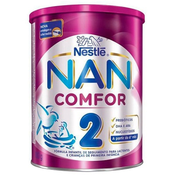 Fórmula Infantil Nan Comfor 2 Lata 800g é uma fórmula infantil de segmento para lactentes e crianças de primeira infância. A partir do 6º mês. Com prebióticos, Dha e Ara e nucleotídeos.